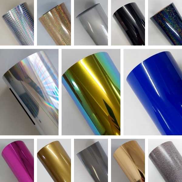 A linha de filmes de recorte holográfico possui 11 cores que produzem efeitos com reflexos de vários tons tridimensionais conforme o movimento e a incidência de luz. Esse filme é muito utilizado para criação de designs de alto impacto e para a combinação com outros tipos de personalização.