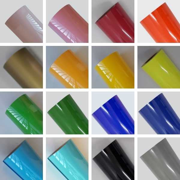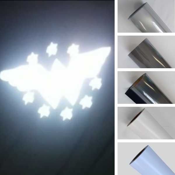 O filme de recorte refletivo é oferecido nas cores prata, branco, azul, arco-íris e chumbo. Disponível com índices de refletividade que atendem à legislação para aplicação em roupas que necessitam de alta visibilidade e também com refletividade adequada para a criação de detalhes luminosos em designs de roupas em geral.