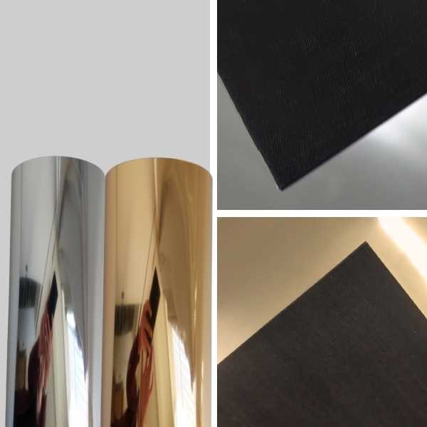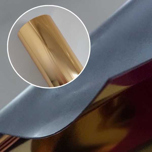 - Acabamento metálico: a superfície do filme é revestida com pigmentos que imitam o brilho e a reflexão de metais, como o ouro e a prata.