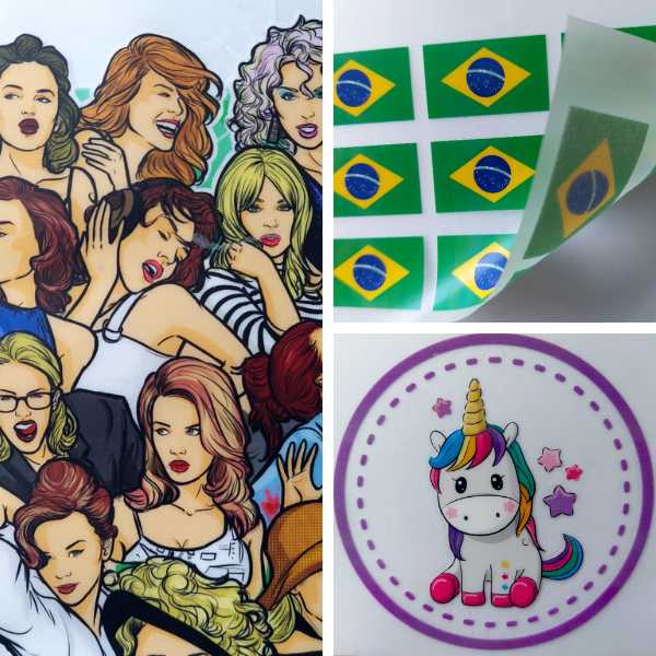 Versatilidade em tecidos: funciona em diversos tipos de tecido, como algodão, poliéster, malha, jeans, couro sintético e até em materiais mais difíceis, como lycra e brim. Não exige pré-tratamento do tecido (diferente do DTG, que precisa de preparação).