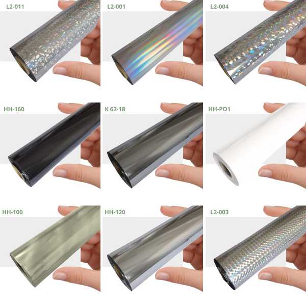 – Fita hot stamping holográfica – 3 tipos diferentes de efeito, incluindo o hot stamping prata laser e hot stamping arco-íris.