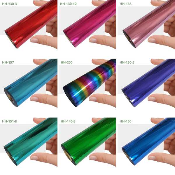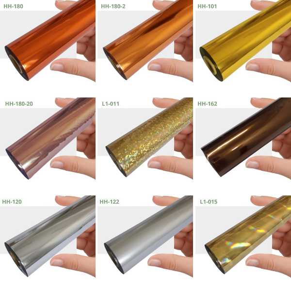 – Fita hot stamping dourada: está disponível com 10 tonalidades com diferentes efeitos e texturas luxuosas: efeito 3D, chuva luminosa, pedaços de vidro, holográfico e lantejoula.