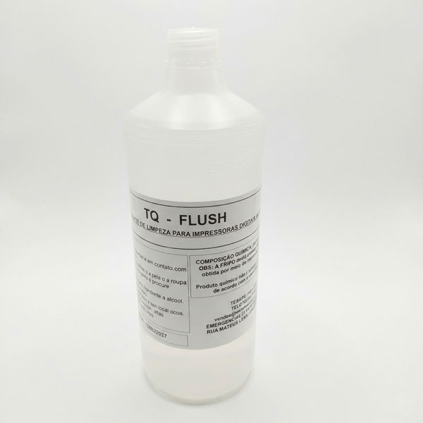 O solvente de limpeza TQ Flush é utilizado para limpeza de impressoras à base de tintas solventes ou ecossolventes.